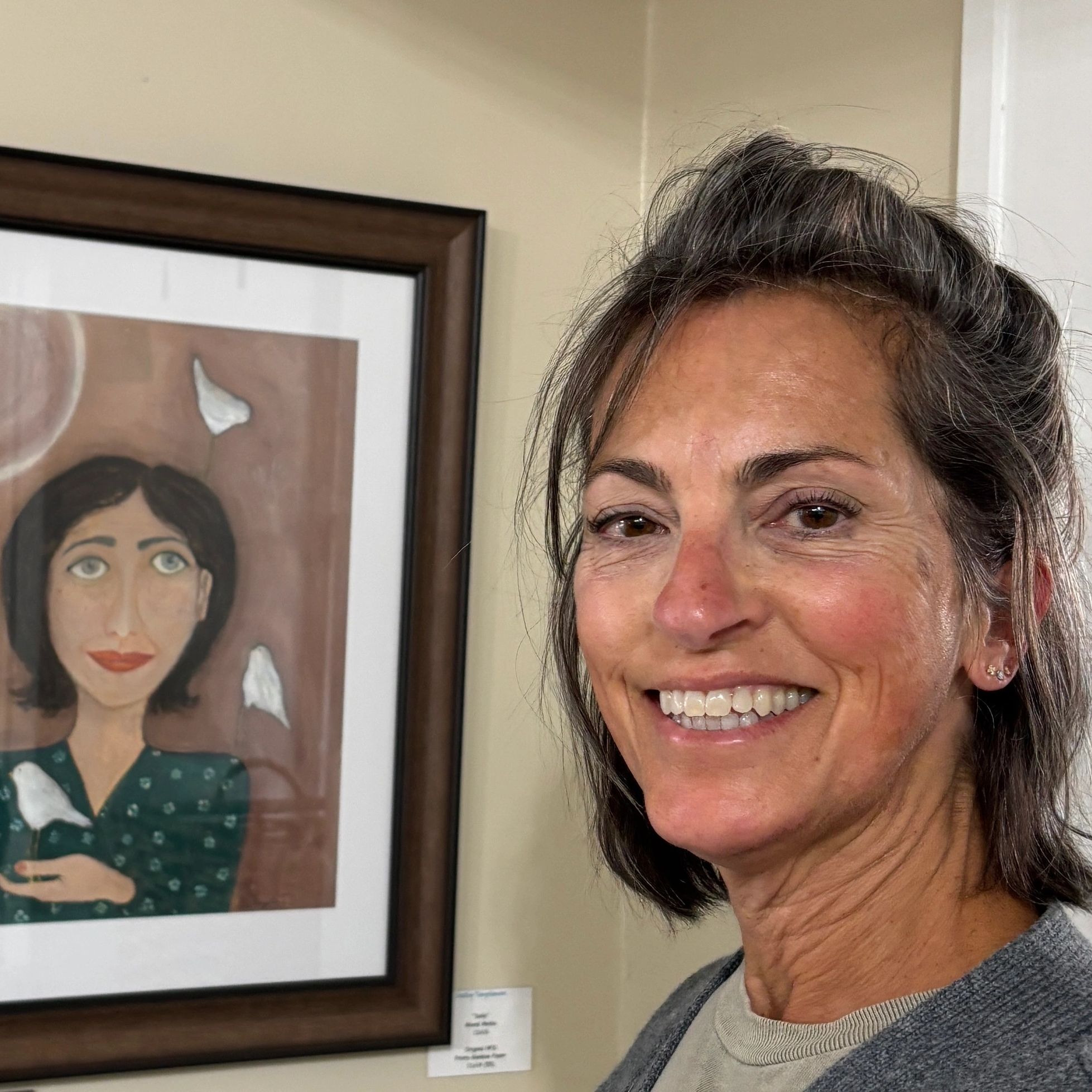 She is originally from Norfolk, Virginia and has lived in many cities and states over the years. As a child growing up her family moved quite a bit, and back then the school system required twins to be separated. When she looks back on those years, she sees her separation from her twin sister and immense shyness drove her to seek refuge in art. She would sit alone, under a huge oak tree during recess and create little friends out of acorns. Her hope is that through her art others will recall their child within and be reminded of God's love for them, reflected in the simplest of things.